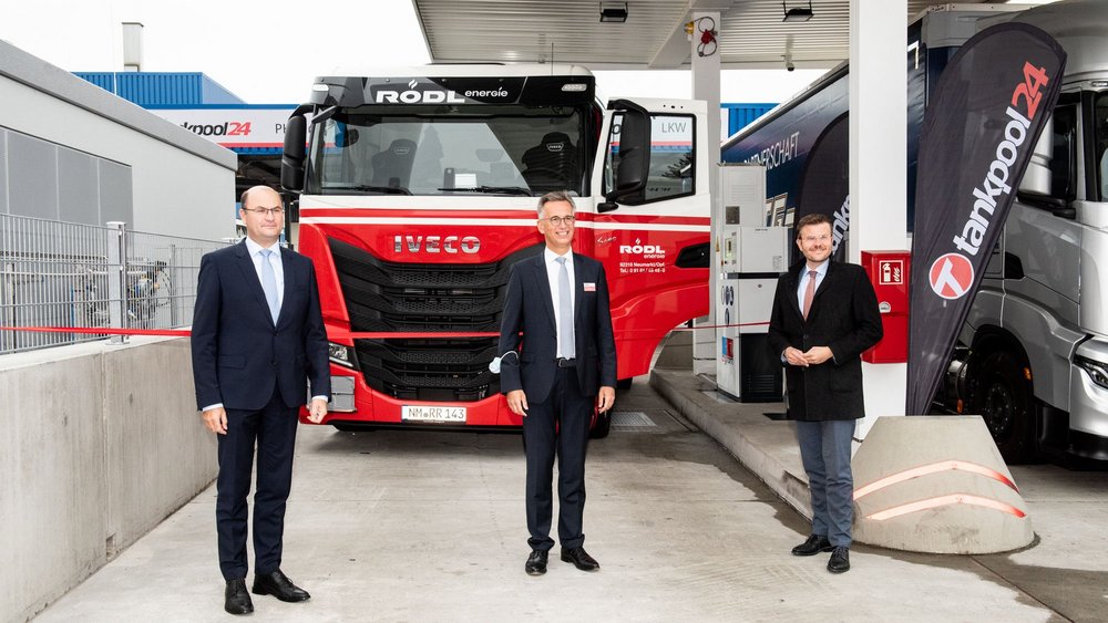 Seit Juli ist die erste LNG-Tankstelle der Metropolregion Nürnberg in Betrieb. Der Neumarkter Energielieferant Rödl energie und die Münchener BayWa Mobility Solutions GmbH (BMS), eine hundertprozentige BayWa Konzerngesellschaft, haben die Tankstelle gemeinsam am verkehrsgünstigen Standort im bayernhafen Nürnberg errichtet. Gestern eröffneten Staatsminister Albert Füracker, Oberbürgermeister Marcus König, Wirtschaftsreferent Dr. Michael Fraas, Stefan Rödl, Geschäftsführer Rödl energie, Matthias Taft, Vorstandsmitglied der BayWa AG, und Joachim Zimmermann, Geschäftsführer von bayernhafen, offiziell die Tankstelle in der Mülheimer Straße 17.