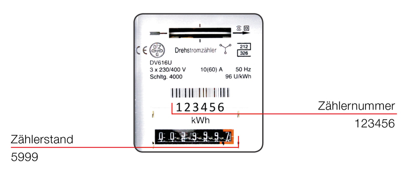 Einmal im Jahr fordert Sie der Netzbetreiber auf, Ihren Zählerstand mitzuteilen. Jeder Zähler hat eine Zählernummer, die eindeutig einer Verbrauchsstelle zugeordnet ist. Ebenfalls an Ihrem Zähler ist auch ein Rollen-Zählwerk, die den aktuellen Zählerstand anzeigt.